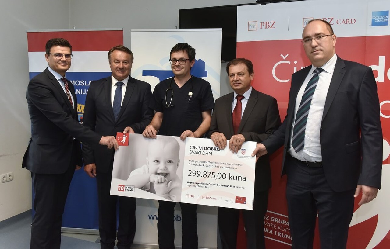 "Ova donacija omogućila nam je kupnju uređaja za elektroencefalografiju i poligrafiju/polisomnografiju, što je jedan od najvažnijih dijagnostičkih sredstava u pedijatrijskoj neurologiji. Ključan je za dijagnosticiranje epilepsija u dječjoj dobi i razlikovanje epileptičkih od drugih neepileptičkih cerebralnih napadaja. Godišnje se na našem Odjelu napravi oko 500 snimaka EEG-a u budnosti i spavanju što govori o važnosti i potrebi za ovim dijagnostičkim pretragama. Zahvaljujući donaciji PBZ Grupe, napravit ćemo značaj iskorak u dijagnostici poremećaja iz područja pedijatrijske neurologije, a naš Odjel sada je jedino mjesto u Županiji s takvim sposobnostima", istaknuo je mr. sc. Goran Kuzmac, dr. med., voditelj Odjela za pedijatriju.